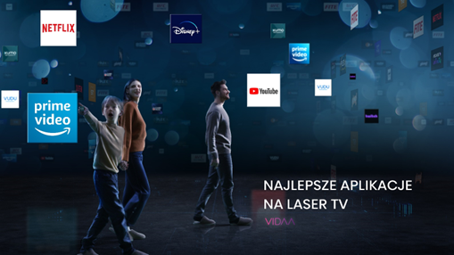 Laser TV L5H posiada szybki i intuicyjny system operacyjny Smart TV VIDAA U6 – gwarantujący dostęp do najbardziej popularnych kinowych aplikacji VOD jak m.in. Netflix, Amazon Prime Video, Disney+, YouTube i wiele więcej. Do tego prosta nawigacja z użyciem pilota lub asystenta głosowego.