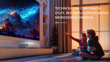 Korzystając z Laser TV nasze oczy widzą jedynie światło odbite, nie są narażone na bezpośrednią emisję świetlną jak w typowych ekranach. To praktycznie zerowa ekspozycja światła niebieskiego. W praktyce oznacza to, że nasze oczy mniej się męczą i możemy cieszyć się oglądaniem telewizji dłużej i bezpiecznie.