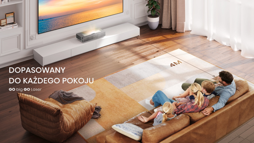 Technologia ultrakrótkiego rzutu w Hisense Laser TV L5H nie wymaga bardzo dużo miejsca na szafce, bo zaledwie 29,7 cm odległości urządzenia od 100-calowego ekranu lub w przypadku 120 cali – 41 cm. To ułatwia instalację i pozwala cieszyć się ogromnym ekranem w salonie.