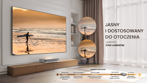 Ciesz się serialami, filmami, wydarzeniami sportowymi i grami w każdych warunkach za sprawą 2700 lumenów jasności. Uchwycisz każdy detal obrazu o każdej porze dnia i nocy.