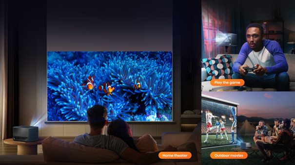 Projektor laserowy C1 wyposażony jest w najnowszą technologię Laser TriChroma i rozdzielczośc 4K UHD. Zobacz niesamowite, żywe obrazy jakich nigdy dotąd nie widziałeś na mini projektorze.
