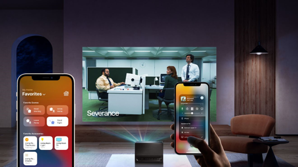 Dzięki Apple AirPlay możesz streamować muzykę, filmy, zdjęcia i gry z iPhone’a, iPada lub komputera Mac wprost na swój projektor. Hisense C1 wyposażony jest też we wsparcie dla Apple Home, czyli możesz sterować nim ze swoich urządzeń Apple wykorzystując technologię Apple HomeKit.