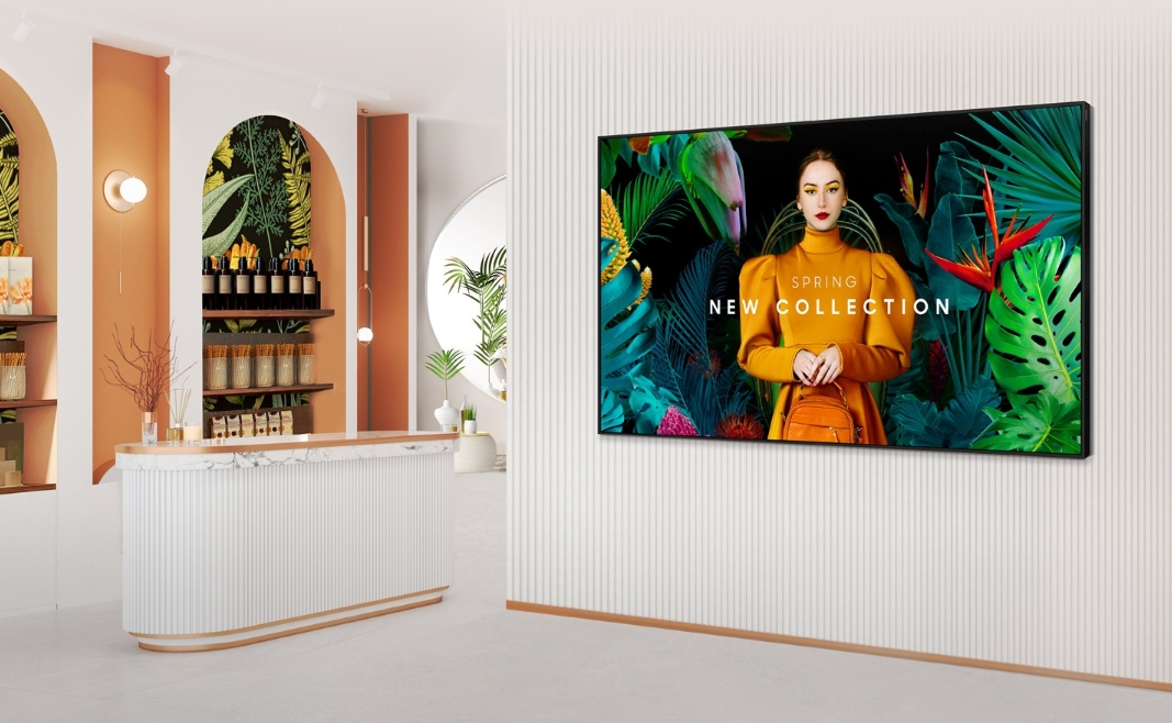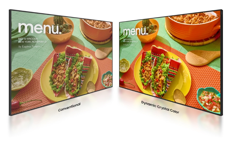 Na 55-calowej przekątnej moc rozdzielczości 4K UHD zostaje w pełni wykorzystana. Model QB55C stosuje technologię Dynamic Crystal Color, co pozwala na odwzorowanie ponad miliarda odcieni kolorów. To gwarantuje, że logotypy i materiały promocyjne są wyświetlane z niezwykłą wiernością i żywością, kluczową dla budowania marki. Wysoki kontrast i jasność 350 nitów gwarantują doskonałą czytelność treści, nawet w jaśniej oświetlonych pomieszczeniach.