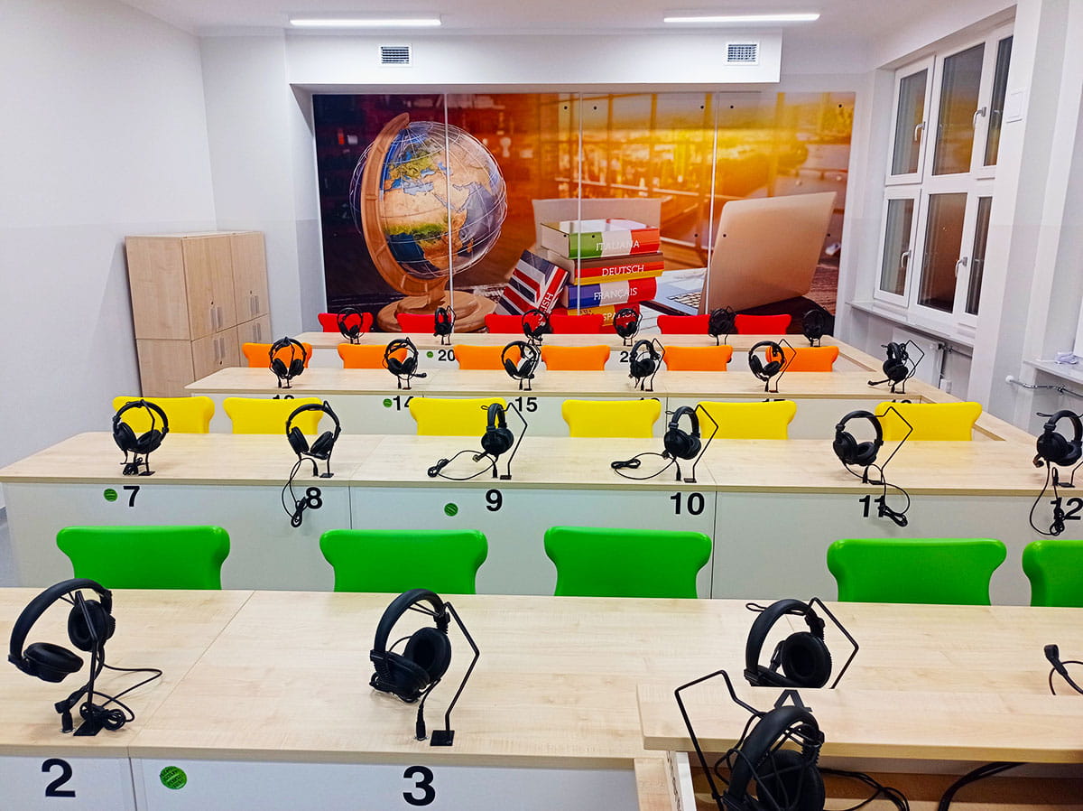 Niezastąpione rozwiązanie wspomagające naukę języków obcych. Koncentruje uwagę uczniów, pomaga w skupieniu i ćwiczeniach. Umożliwia swobodny, głośny trening przez dialogi udoskonalające mowę i przełamujące naturalny opór do rozmów w obcym języku. Zastosowanie nowoczesnych urządzeń to efekt zachęty dla uczniów - efektowne zajęcia będą szybciej zapamiętane. Z pracownią językową skuteczność przyswajania nowej wiedzy zwiększa się o kilkadziesiąt procent w stosunku do tradycyjnego nauczania.