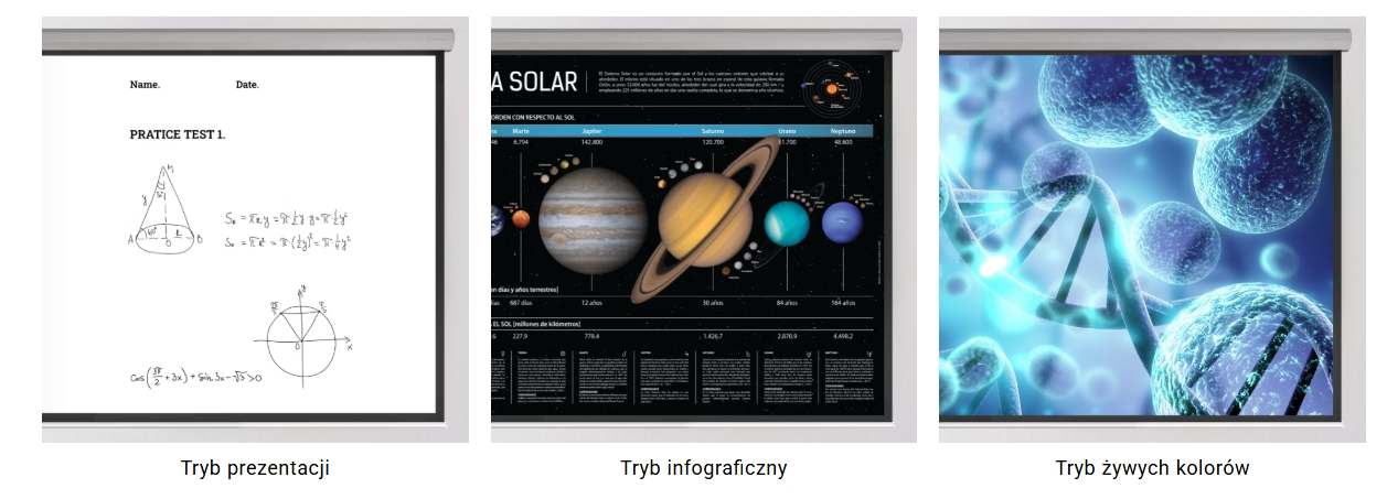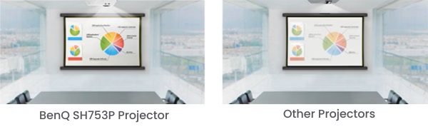 Model SH753P firmy BenQ zapewnia kilka trybów obrazu dostosowanych do różnych miejsc i treści prezentacji. Zawiera dwa zaawansowane tryby prezentacji zaprojektowane w celu zaspokojenia specyficznych potrzeb podczas różnego rodzaju prezentacji. Nowo wydany tryb infografiki idealnie nadaje się do szczegółowego prezentowania tekstu i grafiki infografik ze względu na wysoką jasność kolorów i lepszą gradację kolorów SH753P, zapewniając bardziej nasycone i żywe kolory niż w trybie prezentacji. Dodatkowo tryb Vivid został zaprojektowany z myślą o najwyższej wydajności kolorów podczas prezentacji wideo lub obrazów.