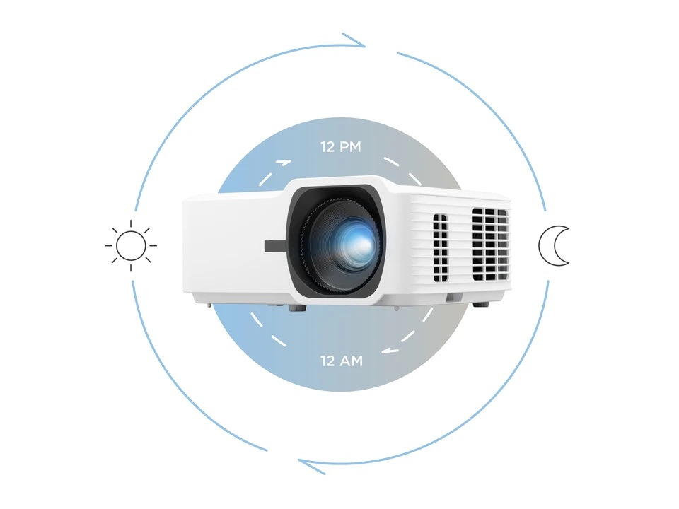 Zaawansowany projekt chłodzenia projektora umożliwia pracę 24/7 bez pogorszenia jakości obrazu lub wydajności. Dzięki temu jest to rozwiązanie podstawowe w aplikacjach wymagających ciągłej projekcji w sklepach handlowych, centrach handlowych, muzeach, lotniskach i innych przestrzeniach publicznych.