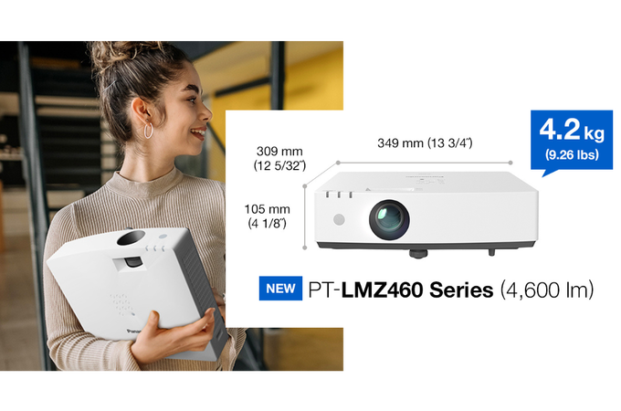 Seria LMZ460 ma szerokość i głębokość niewiele większą niż laptop, ważąc zaledwie 4,2 kg (9,26 funta). Jest wystarczająco lekki, aby można go było przenosić wszędzie tam, gdzie trzeba, i jest łatwy do zainstalowania na suficie. Konfiguracja jest prosta: wystarczy podłączyć źródło, włączyć i rozpocząć prezentację.