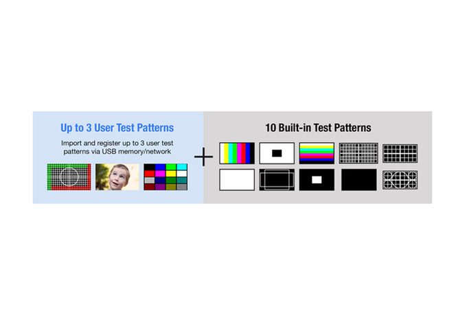 Oprócz 10-krotnie wbudowanych wzorców testowych, użytkownicy mogą importować i zapisywać 4-krotnie niestandardowe obrazy w formacie JPEG, BMP lub PNG do projektora z serii RQ7 za pośrednictwem interfejsu sterowania sieciowego lub pamięci USB do wykorzystania jako wzorce testowe, logo startowe i wygaszacze ekranu bez sygnału. Instalatorzy mogą kalibrować projektory przy użyciu treści klienta lub niestandardowych obrazów bez podłączania do urządzenia źródłowego multimediów.