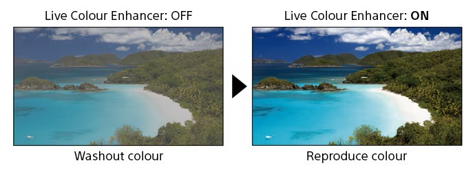 Technologia Live Colour Enhancer (projektor BRAVIA 9) selektywnie rozszerza zakres tonalny, by wytworzyć żywy obraz HDR bez nienaturalnego przesycenia zarówno w świetle dnia, jak i w zaciemnionym pomieszczeniu. Zobaczysz różnicę dzięki dokładnym, realistycznym odcieniom skóry i bardziej żywym obrazom.