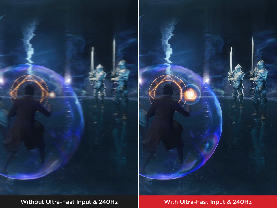 *Ultraszybkie wejście 1 ms obsługuje do 240 Hz przy rozdzielczości 1080p i do 60 Hz przy rozdzielczości 4K. Funkcja ta jest automatycznie aktywowana po ustawieniu domyślnych korekcji trapezowej, regulacji narożników, overscanu i proporcji obrazu.