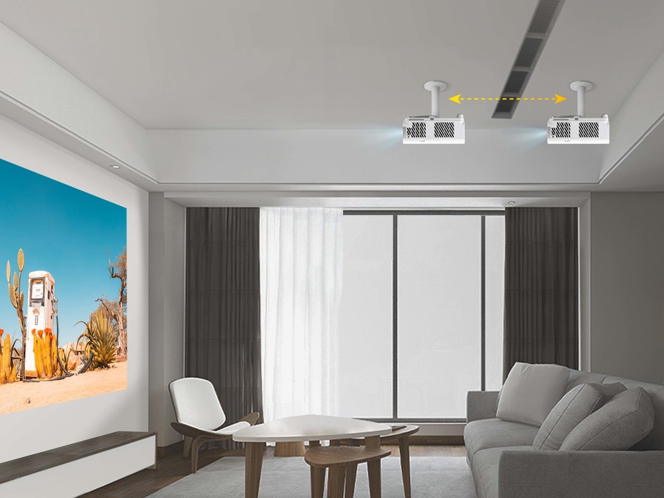 Dzięki elastycznej korekcji trapezowej H/V i regulacji 4 narożników uzyskasz idealnie wyrównany obraz, nawet jeśli projektor nie jest zamontowany idealnie centralnie. Niezależnie od tego, czy projektor jest pochylony w dół, w górę, czy wyświetlany z boku, konfiguracja jest łatwa, a obraz pozostaje ostry.