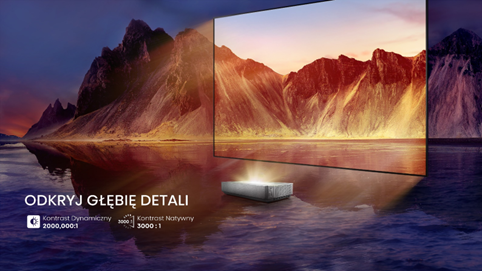 Dzięki wysokiemu natywnemu kontrastowi Laser TV jest w stanie wydobyć detale nawet w ciemnych scenach. Cienie nie stanowią dla L5H żadnego problemu, a to pozwala cieszyć się realistycznym obrazem o niezwykłej głębi.