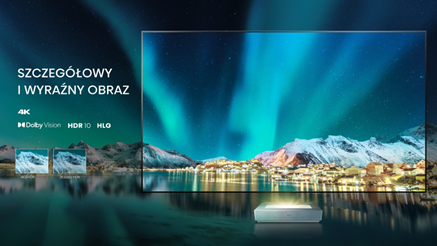 Ciesz się wyjątkowym dużym obrazem zarówno w nocy jak i za dnia. Hisense Laser TV wykorzystuje technologię antyrefleksyjną ALR (Ambient Light Rejecting) dzięki, której obraz jest jaśniejszy i pełen kolorów. Oznacza to, że nie musisz gasić świateł, aby cieszyć się doskonałym obrazem na gigantycznym ekranie.