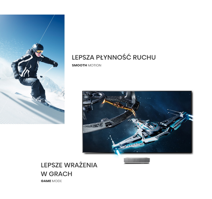 Laser TV posiada technologię Smooth Motion poprawiającą płynność ruchu. Dzięki temu takie treści jak gry czy transmisje sportowe pozostają płynne i czyste. Zapomnij o efekcie teatru czy smużeniu. Aktywuj tryb sportowy podczas oglądania transmisji i poczuj się jakbyś był na stadionie.