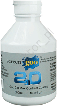 Screen Goo 2.0 jest wynikiem zastosowania potencjału najnowszych osiągnięć w dziedzinie polimerów i pigmentów, zdobytego w przeciągu ostatnich 15 lat tworzenia powłok projekcyjnych. Rozwiązuje wszystkie aspekty Screen Goo Classic, związane z aplikacją farby aż do projekcji. Wyprodukowana na bazie nowych polimerów, bez wykorzystania winylu, który na przestrzeni lat pozbawiał powłoki czystej bieli, odbarwiając ją na żółto pod wpływem działania światła UV.
