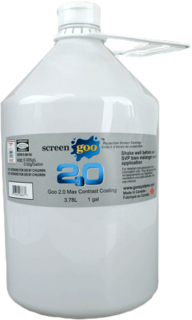 Screen Goo 2.0 jest wynikiem zastosowania potencjału najnowszych osiągnięć w dziedzinie polimerów i pigmentów, zdobytego w przeciągu ostatnich 15 lat tworzenia powłok projekcyjnych. Rozwiązuje wszystkie aspekty Screen Goo Classic, związane z aplikacją farby aż do projekcji. Wyprodukowana na bazie nowych polimerów, bez wykorzystania winylu, który na przestrzeni lat pozbawiał powłoki czystej bieli, odbarwiając ją na żółto pod wpływem działania światła UV.